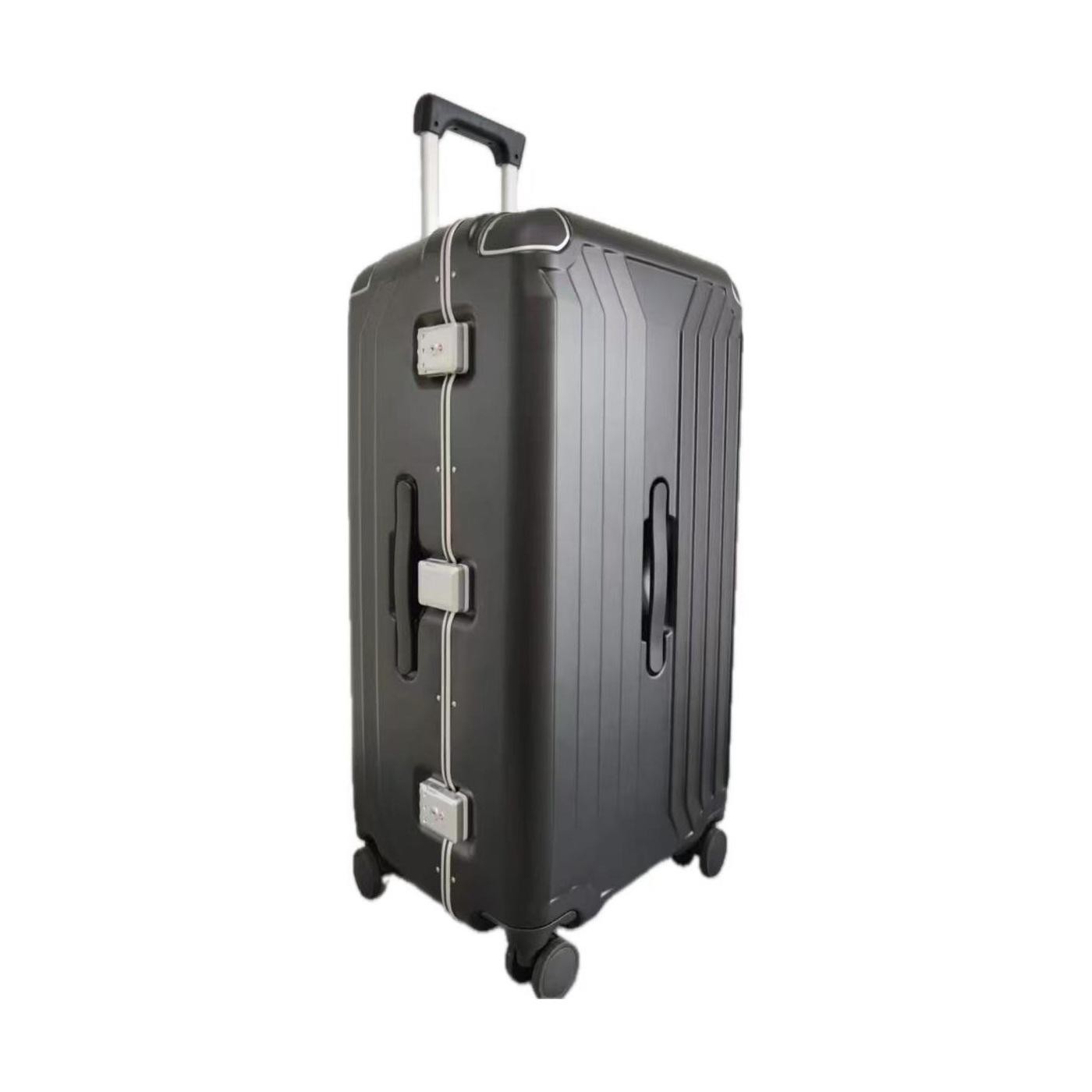 ALUMINUM FRAME TROLLEY CASE Made of impact resistant, durable polycarbonate material With cloth lining With TSA lock With retractable aluminum pipe trolley Four 360° wheels for ease of moving